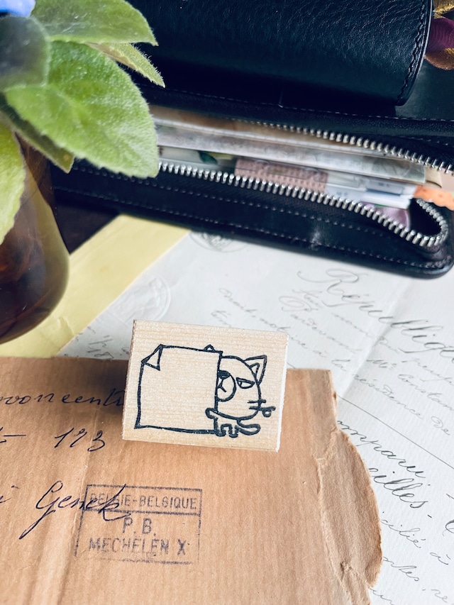 受注制作◆消しゴムはんこ#007◆ひょっこりネコメモ持ち